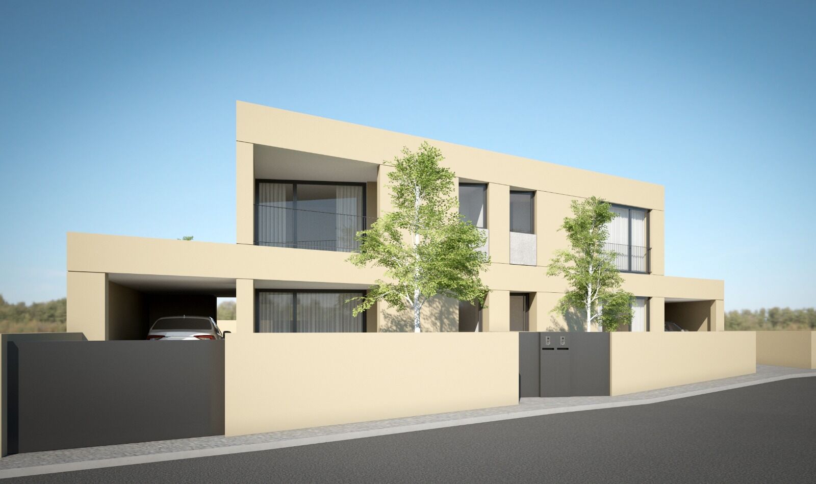 A pensar no futuro e na eficiência, a moradia conta com pré-instalação de ar condicionado e bomba de calor para aquecimento de águas, garantindo poupança e sustentabilidade. No exterior, o lote de cerca de 220 m² oferece espaço para jardim, área de lazer ou simplesmente para desfrutar de momentos ao ar livre. O alpendre para estacionamento acrescenta comodidade e proteção ao dia a dia.